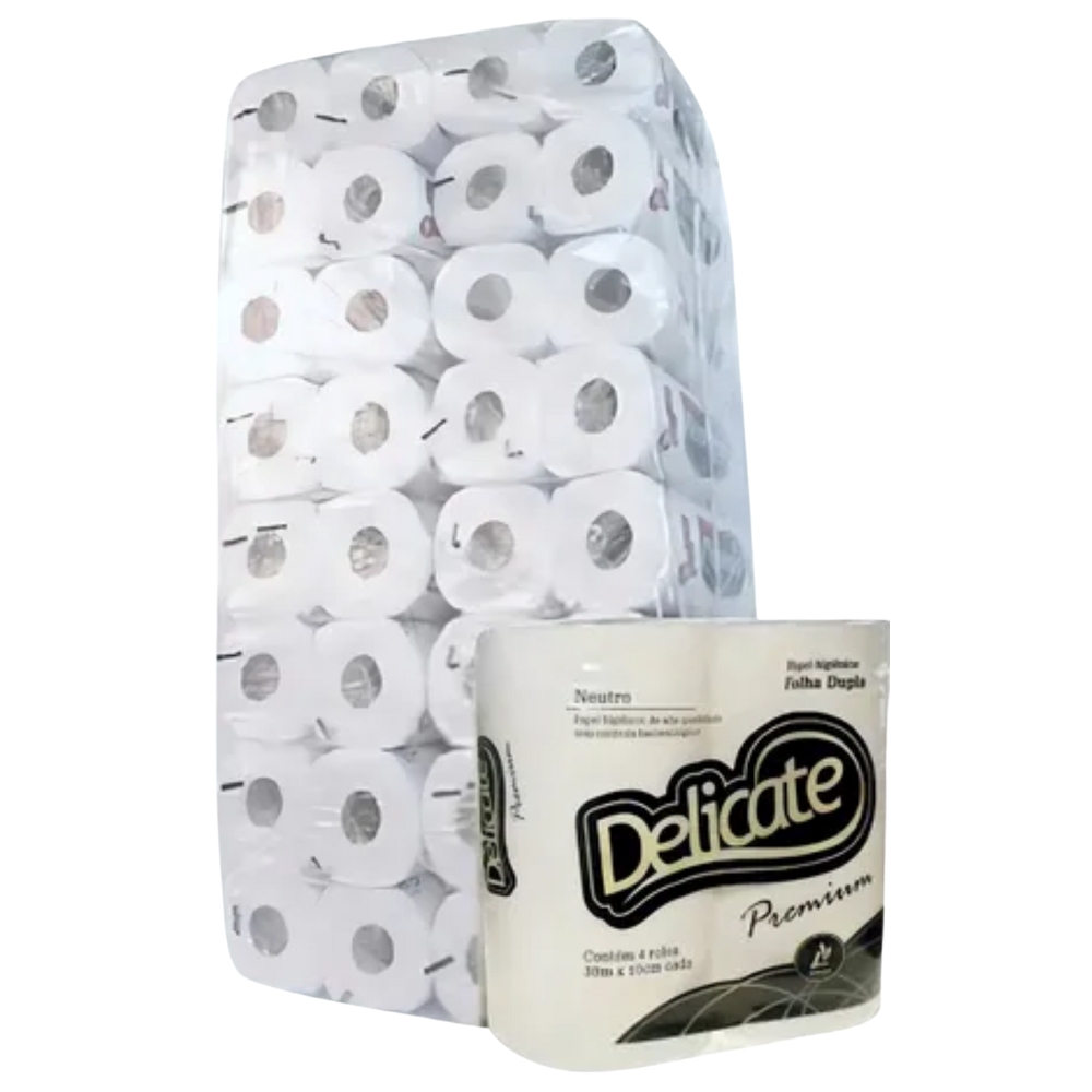 Papel Higiênico Delicate Pemium, pacote com 64 rolos.